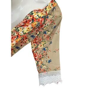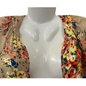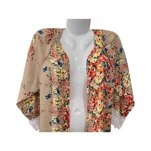 Relipop Women's Tan Floral Print Open-Front Duster/Kimono/Wrap/Coverup | Size M