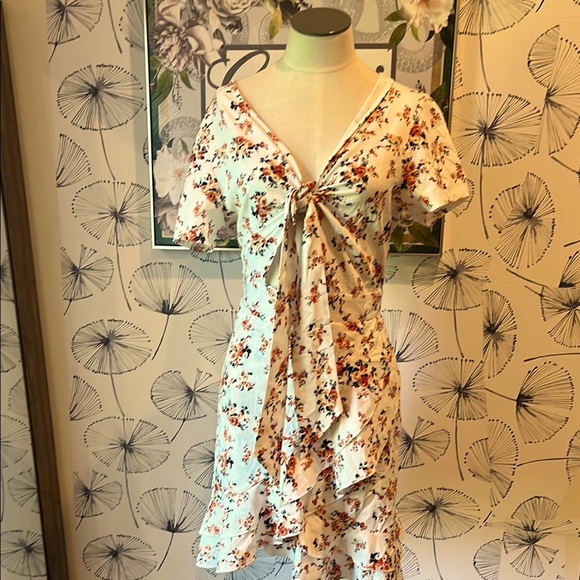Chic floral dress with a tie-front design. Perfect for any occasion.