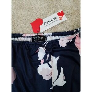 Relipop~Woman Size M~Floral Print Flared Half Sleeve Elastic Tie Waist Jumpsuit.