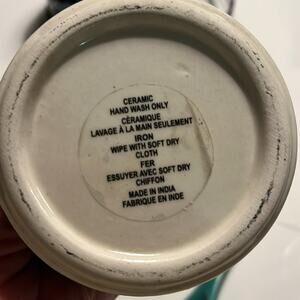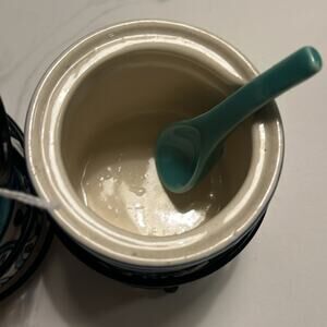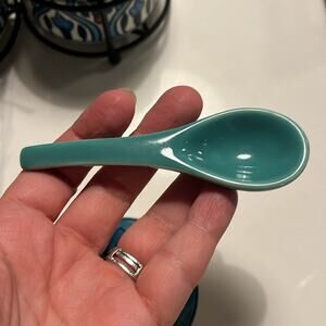 Relish or condiments jar with iron stand and serving spoons ceramic turquoise blue color beautiful