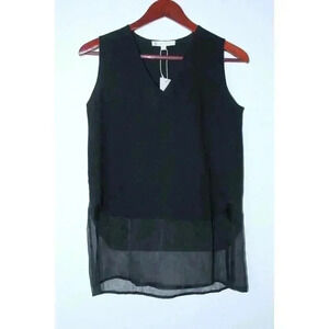 Relished Solid Black Opaqe Sheer Layered Women's Tank Top Size S