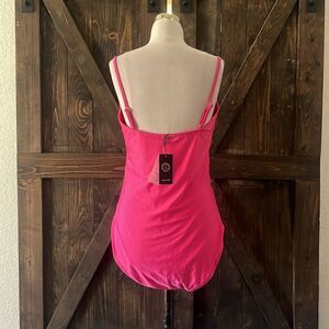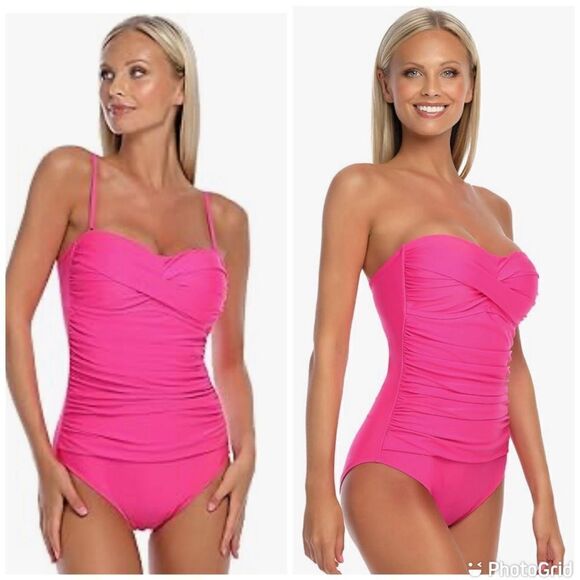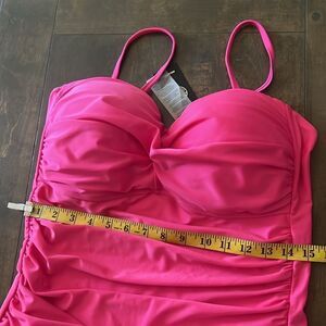 Relleciga Neon Rose Tummy Control Ruched Swimwear Strapless One Piece