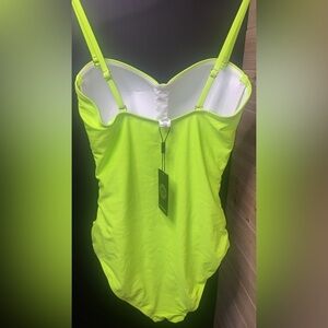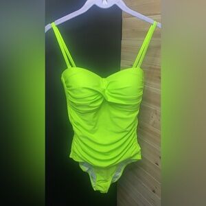 Relleciga One Piece Women’s Padded Spaghetti Strap Swimsuit Size S Neon Green