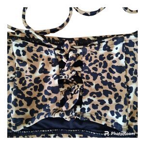 Relleciga Leopard Print Adjustable Back Lace Up Bandeau Bikini Swim Top