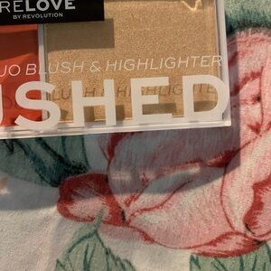 Relove by Revolution duo blush and highlighter. Features vibrant red and gold shades.
