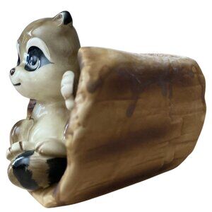 Relpo Raccoon in Log Planter #57834 Vintage Japan Ceramic Woodland Decor