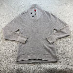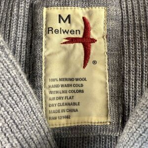 Relwen Half Cardigan Shawl Sweater Mens Medium Heather Gray Merino Wool *READ*