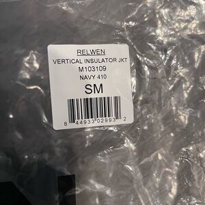 Relwen vertical insulator jacket- brand new with tags, never worn. Amazing company. Timeless piece. Navy. Size- small