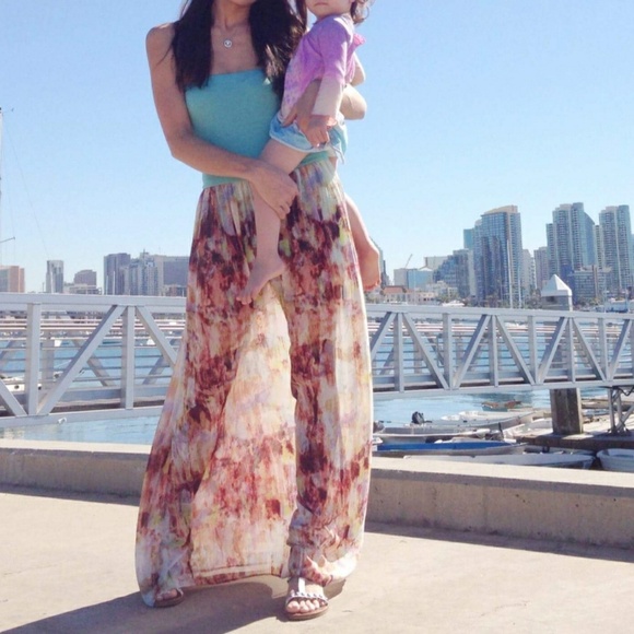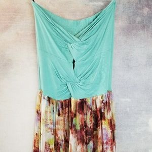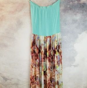 Strapless maxi, criss cross open back, sheer bottom with built in knee length slip