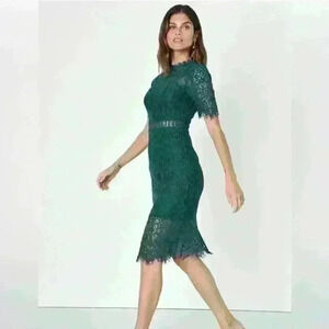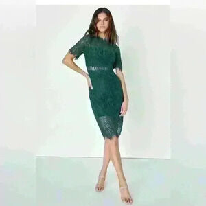 Remarkable Forest Green Sheer Lace Short Sleeve Mini Dress Size Small NWT