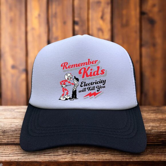 Remember Kids Electricity Will Kill You Mens Trucker Hat Black Snapback Cap