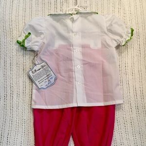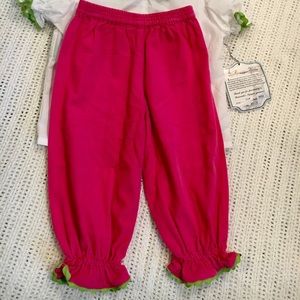 Two piece top and pants with cinched arms and ankles, ric rac lining. Boutique outfit, NWT