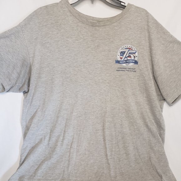 Remember Pearl Harbor 1941 'Honoring the Past Inspiring the Future' Mens T-shirt (Size XL) & (Pre-Owned). This tee is in great condition with no flaws. The last pictures look discolored, and the lighting was not correct. This tee is gray.