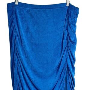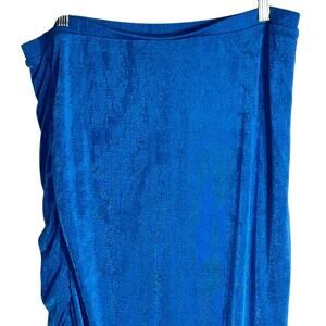 Remi x Revolve Blue Draped Ruched Maxi Skirt Size 2X | Lined High Slit Skirt