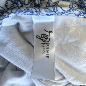 Remie Girl white with blue floral print leotard with ruffles on straps and front. Lined. Play condition for was wear and red paint stain. Also have matching skirt in my shop. Perfect for play, preschool or gymnastics, dance or tumbling class. Size 6 tts.