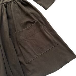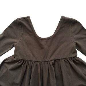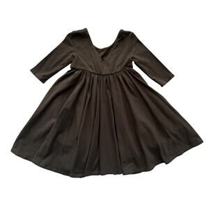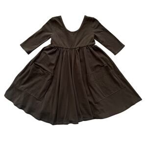 Adorable Remie Girl dark green twirl dress in excellent condition! This charming dress features 1/2 sleeves and large pockets, perfect for your little one. Size 5. No flaws or significant wear. Color appears brown in the pictures, but this is a dark moss green.