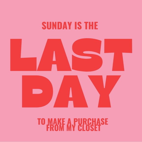 Sunday will be the last day to shop my closet for a bit and to buy what’s currently listed. I’ll be donating whatever doesn’t sell this weekend and will start fresh once the move is complete and we are settled.