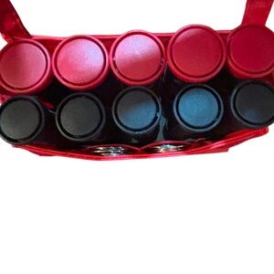 Compact hair rollers set in red and black. Perfect for styling on the go.