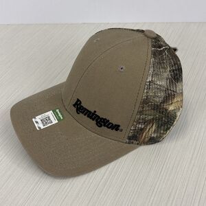 Remington Logo Hat Mens Beige Camo Vented Mesh SnapBack Trucker Hat Cap NEW