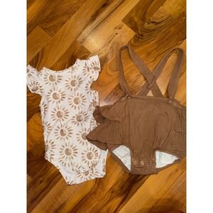 Remington Road Kids 9M Romper Set Brown Ruffle Sun Print Bodysuit Outfit summer