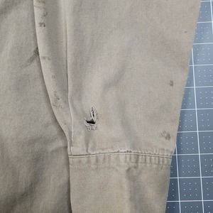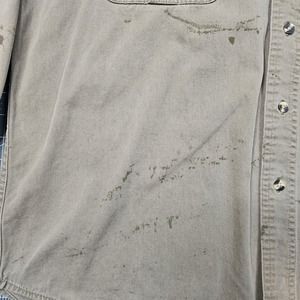 Remington Heavy Twill work shirt men's large. Numerous areas of distressing with a couple of holes and stains. See pictures. 1131