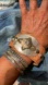 Tooled leather cuff featuring Remington 12 gage shotgun shell casing , central crystal ,6 large studs , fits up to 7 1/4” wrist ( shown on 6” wrist).
