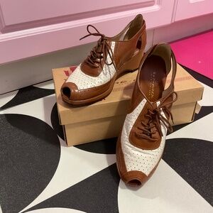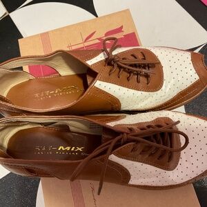 listing is for lightly worn Spectator shoe from remix vintage. Size 8, fits like 8.5. They’re in good used condition. Only minor scuff on inside (white part and on the tip of shoe. From smoke free and pet free home.