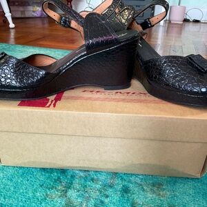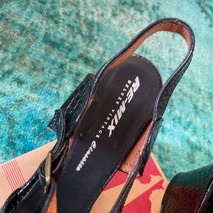 listing is for a pair of black croc paseo sandals from re-mix vintage. Size 8.5 Excellent condition. Only worn 2 or 3 times. True to size, very comfortable . I just dont reach for them. From smoke free pet free home.