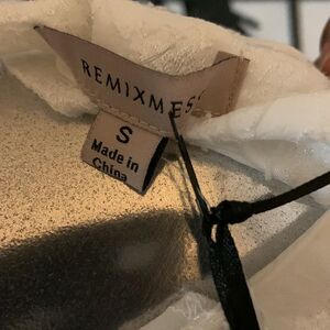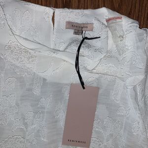 White Shirt with pearl accents on the sleeve and back neck button. Finished with bows in the the short sleeves. New with Tag