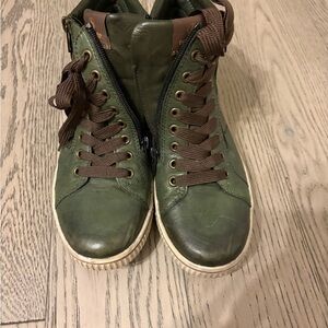 Women’s Remonte D0772 Maditta high-top sneaker boots in a forest green leather finish. Size 40.