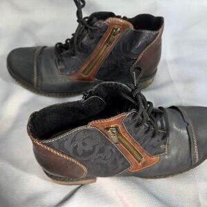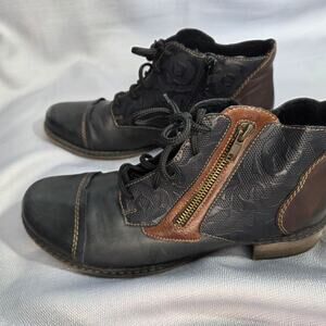 Remonte D4378-16 womens fashion comfort short boots, size 39/8.5, blue & brown