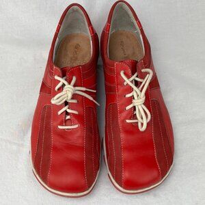 Add a bold statement to your wardrobe with these striking red leather comfort shoes by Remonte. Known for their exceptional craftsmanship, these shoes feature premium leather, contrast stitching, and cream-colored laces for a timeless yet modern look. The removable insoles make them perfect for custom orthotics, while the lightweight wavy sole ensures all-day comfort and support. These versatile shoes are ideal for casual outings or adding a pop of color to any outfit. Gently used and in excellent condition, they’re ready to become your new favorite pair!