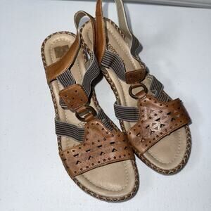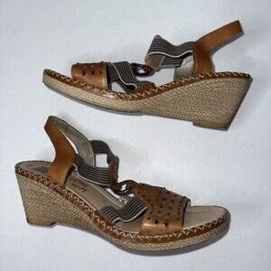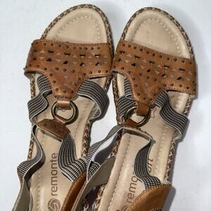 Remonte Soft By Reiker Womens Leather Laser Cut Studded Wedge Sandals Size 38.