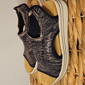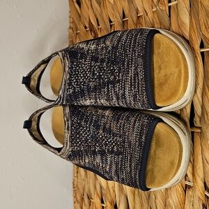 Remonte Soft Womens Navy & Tan Stretchy Comfort Open-Toe Shoes Sandals Sz.37 / 7