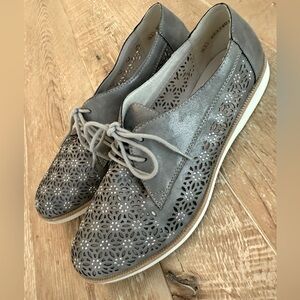 Remonte Women's Kennya Lasser Cut Gray Silver Lace Up Oxford size 41 EUC