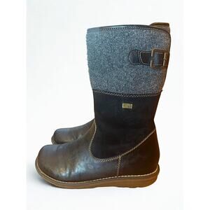 Material: Leather upper, wool felt shaft, cozy synthetic shearling lining