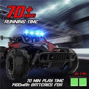 🧿70 mins Running Time & Rechargeable Li-ion Battery: The car uses 7.4V 1400mAh Li-ion rechargeable battery, 2 batteries included. It can run for up to 70 minutes at a time(35 Mins for each battery), allowing you to experience continuous and uninterrupted gaming hours