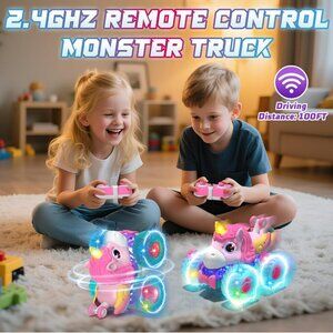 Remote Control Car for Girls 360° Rotating Unicorn Monster Truck RC 4WD Gift