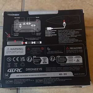 Teensy remote control racing boat in sleek black and red design. Perfect for racing enthusiasts.