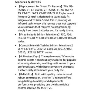 Remote Control Replacement Smart Fire TV Insignia Toshiba Hisense NS-RCFNA-21