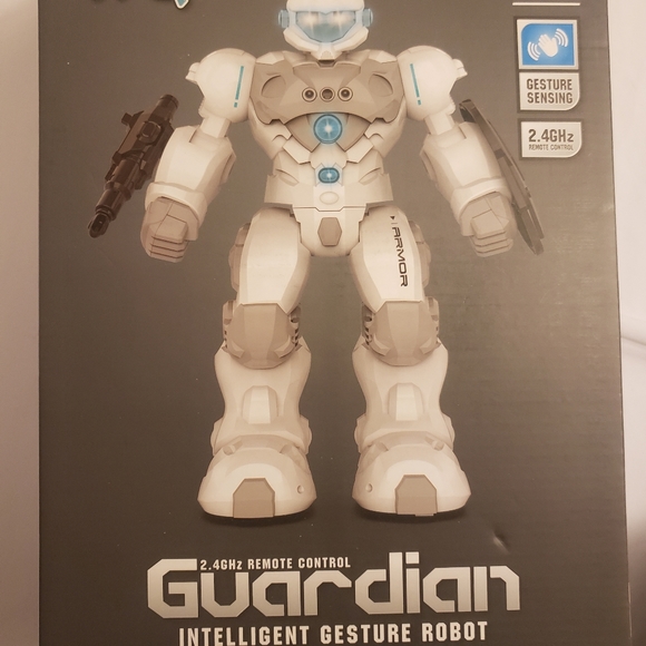 New, never used in box Guardian Intellegent Robot w/remote control. 22 different commands. Gesture sensing