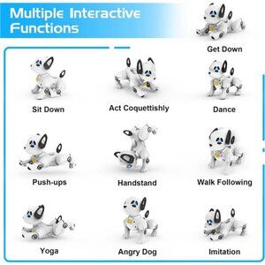 🧿【Intelligent Programmable RC Toy Dog】12 functions remote control directives, you also can program the Robot dog to perform according to your demands, then the dog will repeat what you programmed. Follow, Imitate, Dancing, Yoga, Move Forward, Handstand, Push-ups, Sit down, Crouch Down, Wrath, bark Adjust Volume, etc. The smart dog will record up to 100 commands, It will help your kids use their imagination and creativity to practice simply programming.