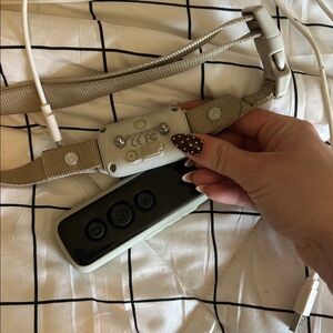 Light grey shock collar for dogs. Comes with remote, collar and a dual charger for both. Works great just don’t need anymore. It is adjustable but it’s a size medium-large
