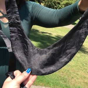 Removable dress collar is in great condition. It is versatile with neutral tones that will match most colors and lined with satin underneath so it won't irritate your skin. Silky black ribbon ties in the back, can flow free or be tucked into a dress. Great accessory for making a daytime look into an evening look with something small that will fit into your purse. I have included before and after photos above. It can also be used as a belt, the ribbons in the back are definitely long enough.