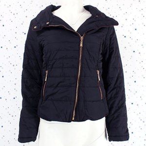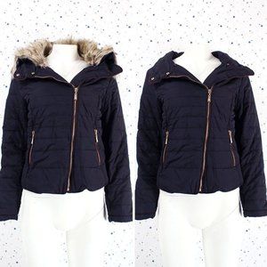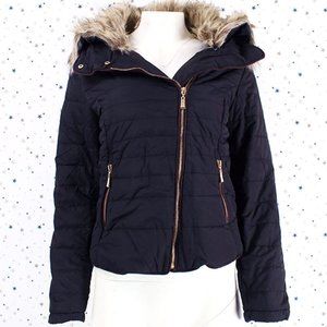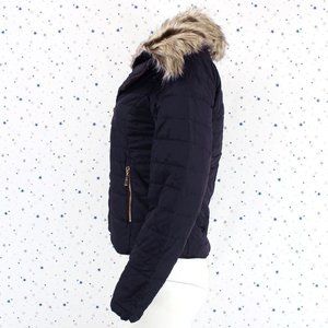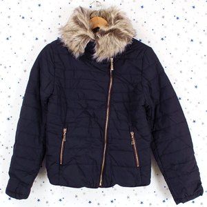 Removable Faux Fur Collar Puffer Jacket Dark Navy