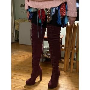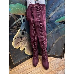 Remy Women thigh high lace up front suede boots Size 8.5 Purple. Excellent Shape. Don't look to have been worn before.