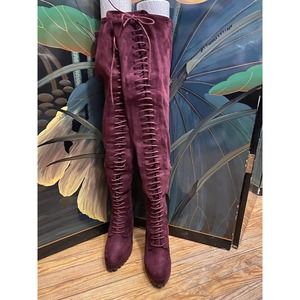 Remy Women thigh high lace up front suede boots Size 8.5 Purple
