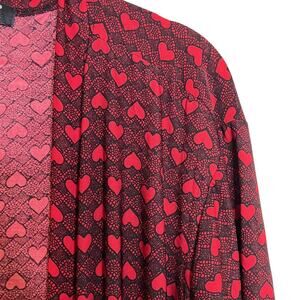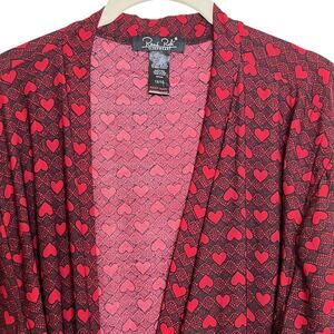 René Rofé robe, womens heart print robe, plus size robe 1X, Valentine’s Day robe, red black robe, belted sleepwear robe, 3/4 sleeve robe, lightweight lounge robe, soft stretch robe, romantic robe, plus size lingerie cover up, cozy womens robe, heart pattern robe, womens dressing gown, plus size dressing gown