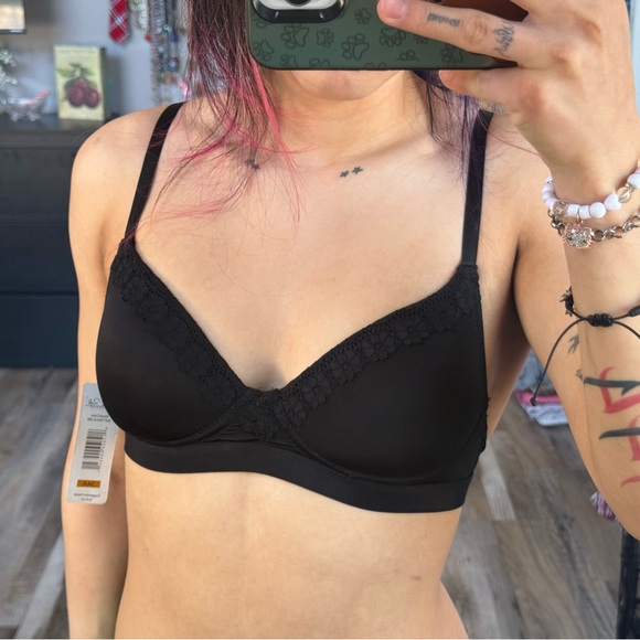 Black women’s bra, flower lace around the edge. New w tag Brand: Rene Rofe Size: 34A #bra #lace #lingerie #explorepage
