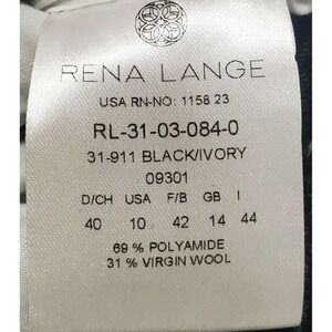 Up for Consideration is this Classy Rena Lange Black Mesh Design with Ivory Lining Dress, Size 10 US. The Black Mesh over Ivory Lining gives it a very Classy Look. You need to add this Dress to your 'Little Black Dress' Collection. There is one small piece on the top left shoulder that will need to be re-stitched down ~ see pic 12. Made in Slovenja. Material: 69% Polyamide, 31% Virgin Wool. Do Not Iron with Steam.
